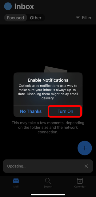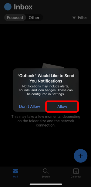 Tap Allow to give Outlook permission to send you notifications.