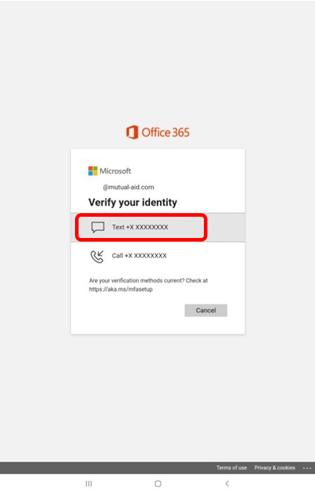 Select whether you want a text message or phone call code from your Multi-Factor Authentication.
